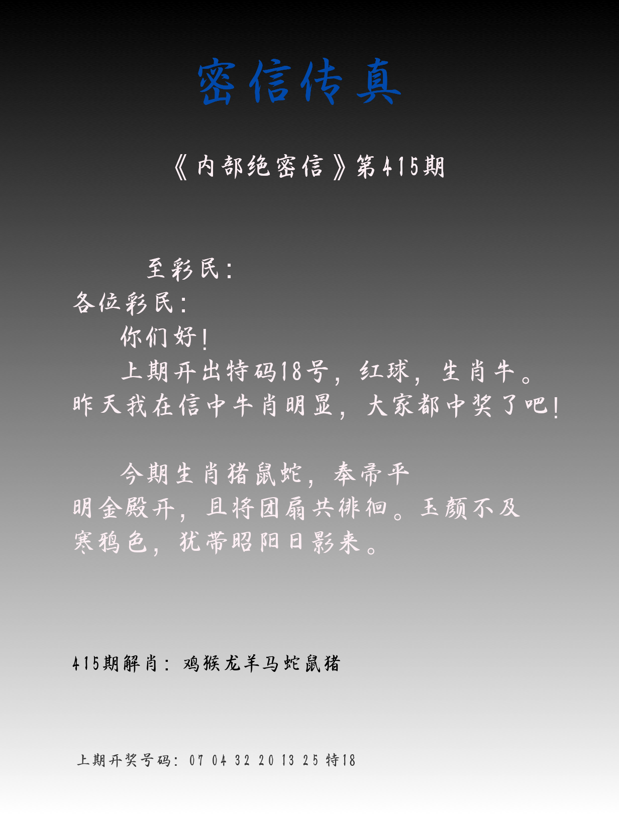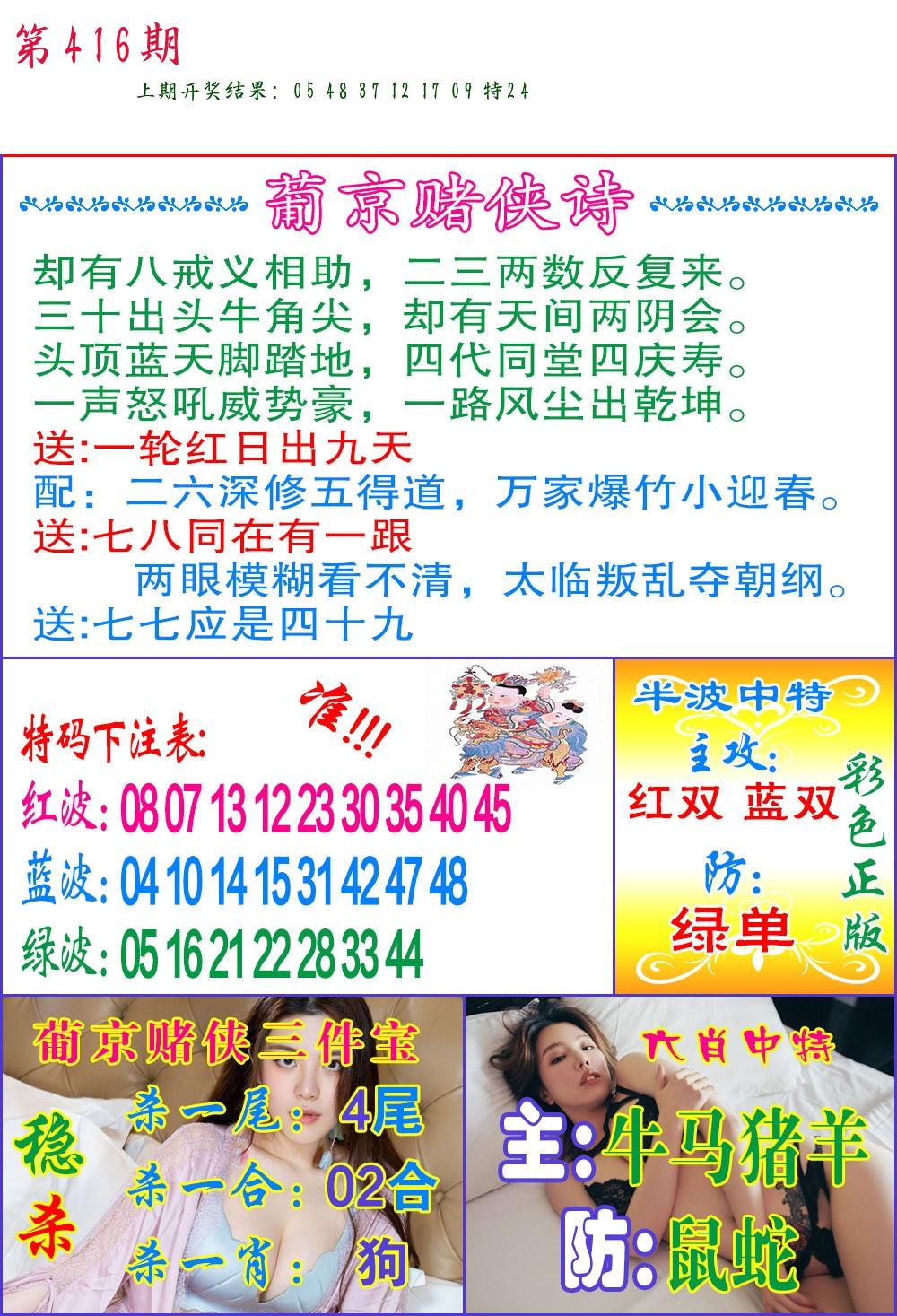 0415期:单双四肖八码 开:?????
