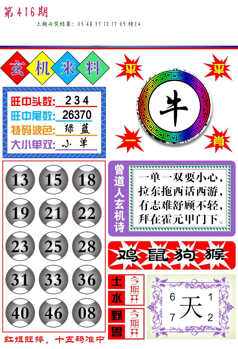 0414期:单双四肖八码 开:18牛错