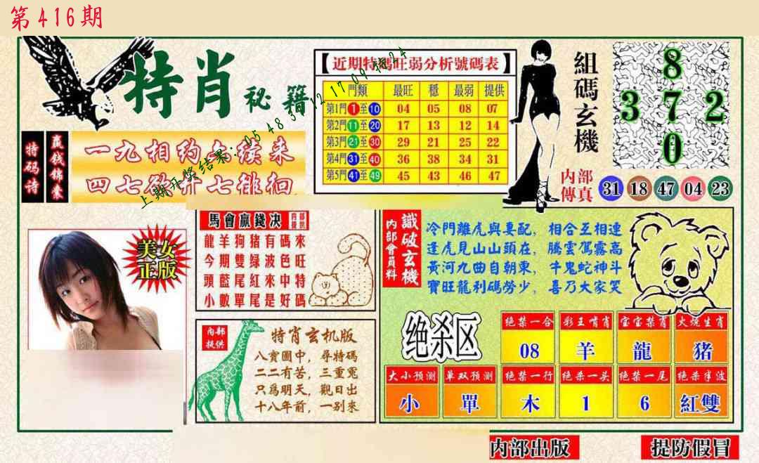 马会内部传真 马会追踪B版 美女数码料