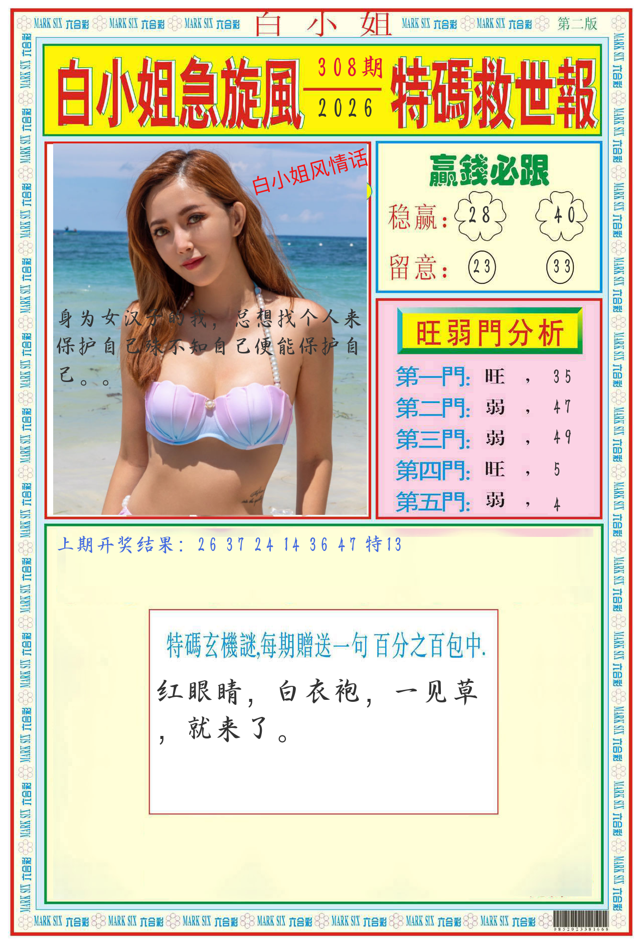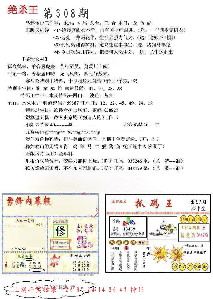 | 0301期:逼哥四尾八码 开33狗错 | |