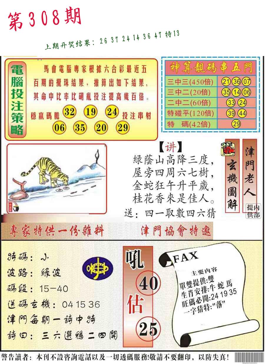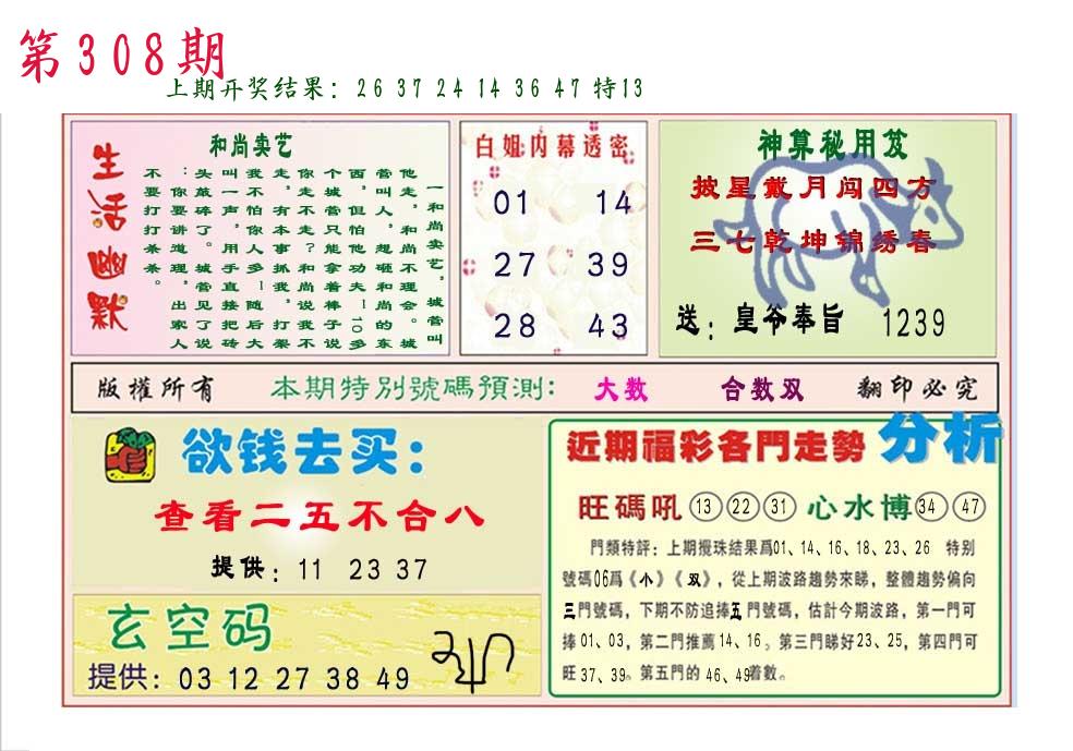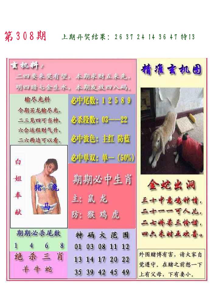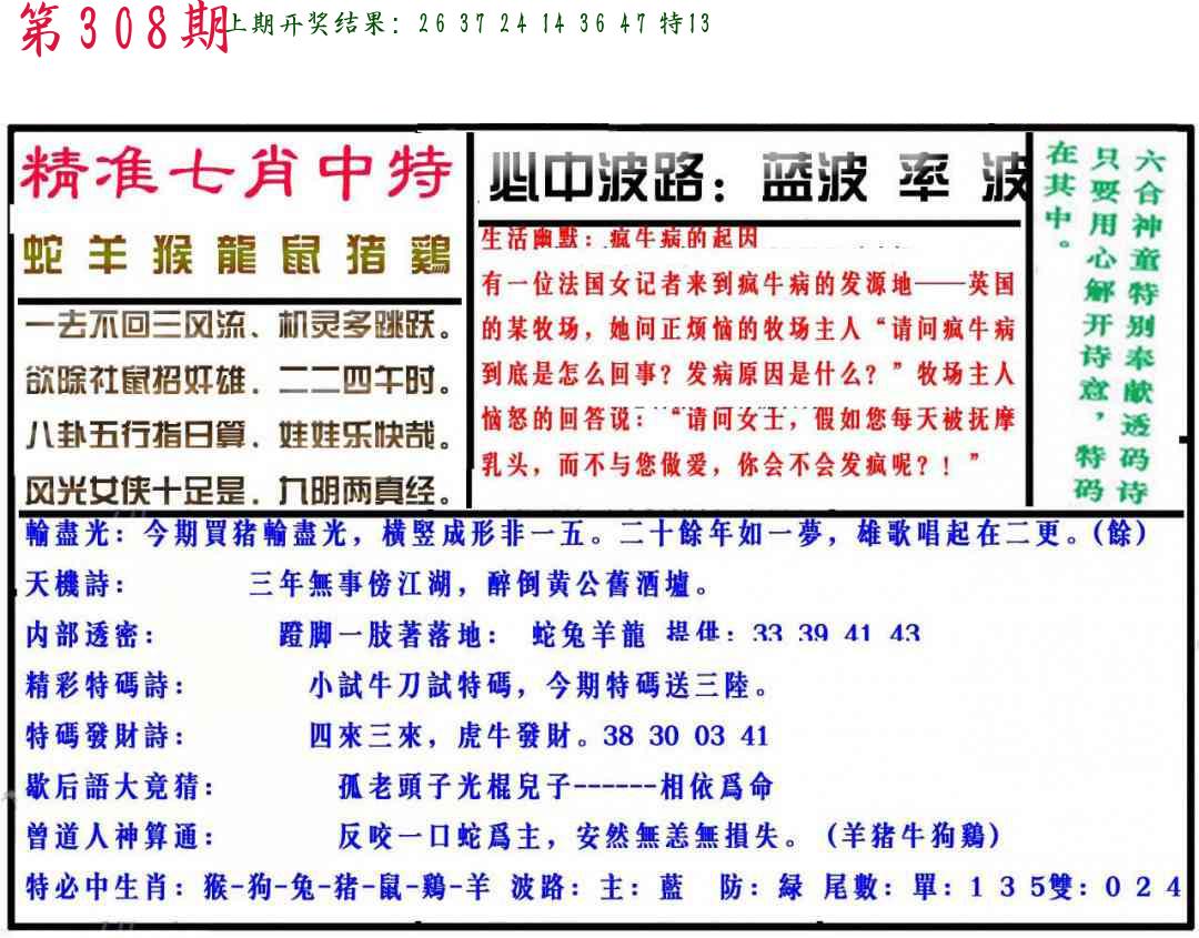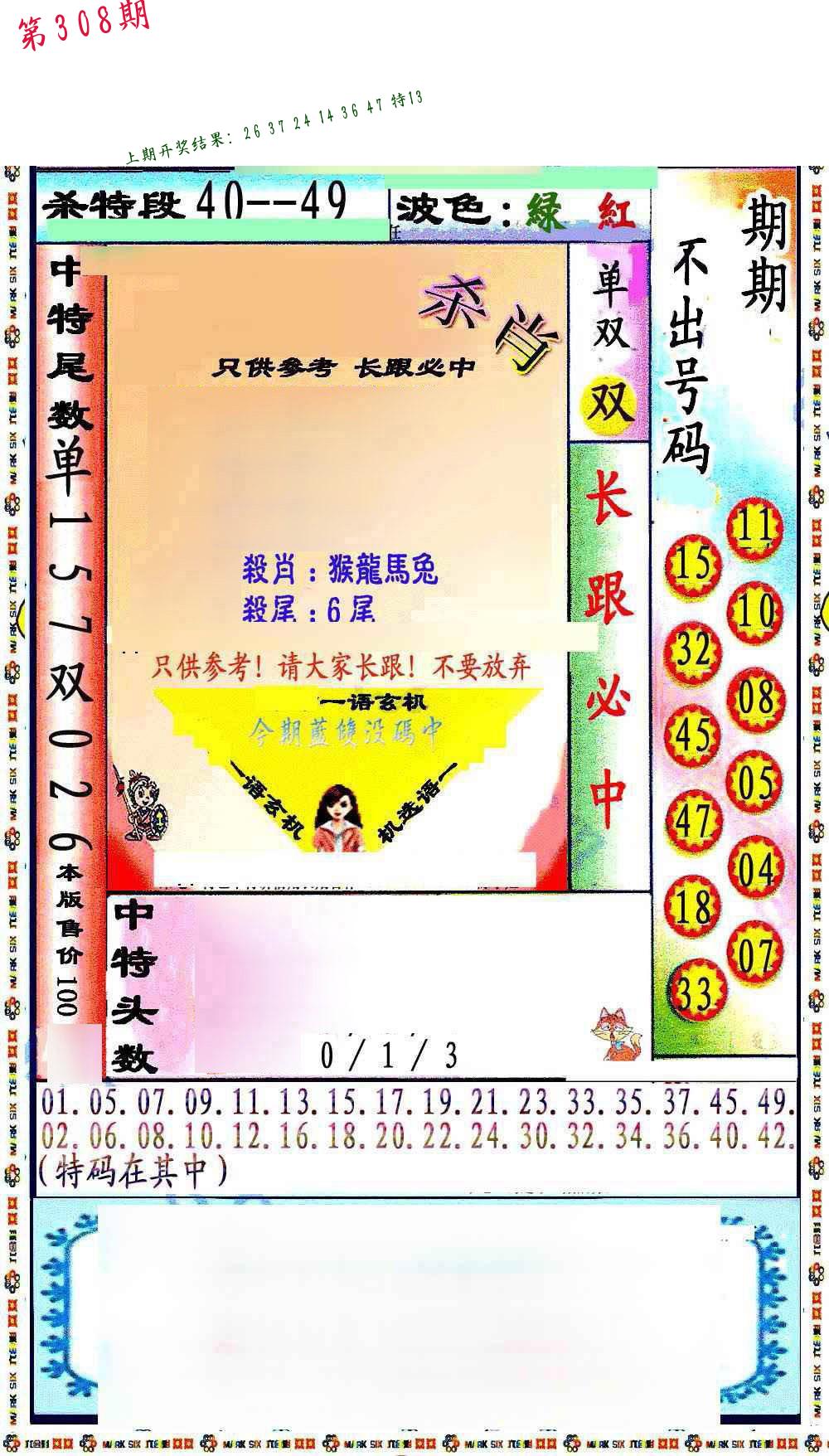 | 0306期:单双四肖八码 开:07鼠错 | |