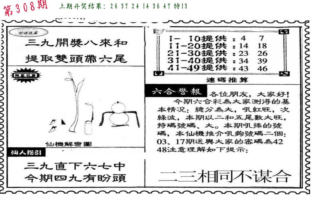 0301期【隔壁老胡18码】开33狗 03-04-37-41-18-19 |
